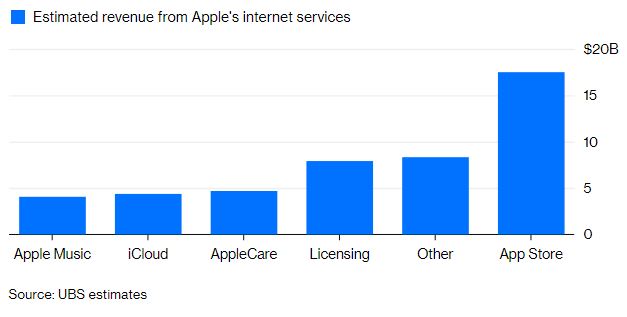 Η μεγαλύτερη πηγή εισοδήματος της Apple μετά τα hardware, είναι το App Store του iPhone και όλα τα υπόλοιπα είναι σχετικά μικρά για τα πρότυπα της Apple