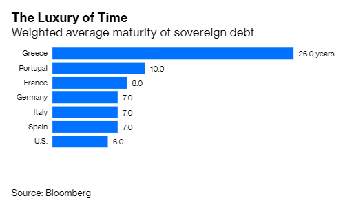 Η Royal Bank of Canada πρόσφατα αγόρασε ελληνικούς τίτλους αξίας 84 εκατ. ευρώ σύμφωνα με επίσημα έγγραφα που επεξεργάστηκε το Bloomberg. Το ελληνικό χρέος συνεχίζει να συσσωρεύεται, με την αναλογία ως προς το ΑΕΠ να έχει αυξηθεί στο 181,9% από το 82% το 2006 και είναι το δεύτερο υψηλότερο μεταξύ των 25 ανεπτυγμένων οικονομιών. Αλλά οι επενδυτές μπορούν να αναθαρρήσουν από τη μέση ωρίμανση του ελληνικού χρέους που, ξεπερνώντας τα 25 έτη, είναι σχεδόν τετραπλάσια σε σχέση με το συγκρίσιμο χρέος της Ισπανίας και της Ιταλίας και υπερδιπλάσια σε σχέση με αυτή της Πορτογαλίας.