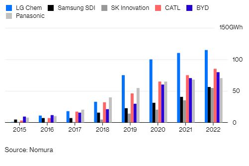 Οι κορυφαίοι κατασκευαστές μπαταριών όπως η Samsung SDI Co., η SK Innovation Co. και η LG Chem Ltd. της Νότιας Κορέας, η κινεζική Contemporary Amperex Technology Co. και η ιαπωνική Panasonic Corp. προωθούν εδώ και χρόνια την εμπορία μπαταριών επόμενης γενιάς. Καθώς οι παραγγελίες των αυτοκινητοβιομηχανιών αυξάνονται, οι εταιρείες προσπαθούν να ανταποκριθούν στις νέες ανάγκες. Ωστόσο, η τεχνολογία δεν εξελίσσεται τόσο γρήγορα όσο αναμενόταν. Τα περιθώρια λειτουργικού κέρδους ήταν κατά μέσο όρο αρνητικά και οι ελεύθερες ταμειακές ροές είναι ασταθείς.