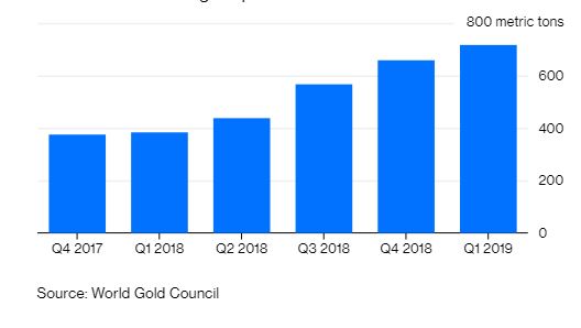 Το δολάριο, φυσικά, παραμένει το μεγαλύτερο αποθεματικό νόμισμα στον κόσμο, και ο χρυσός και άλλα νομίσματα δεν τον μετατοπίζουν ακριβώς από αυτή τη θέση διεθνώς. Όμως, το Παγκόσμιο Συμβούλιο Χρυσού παρατήρησε μια ανοδική τάση στις καθαρές αγορές χρυσού από τις κεντρικές τράπεζες και πέρα από τις προσπάθειες της Ρωσίας -ακόμη και αν η Ρωσία παραμένει ο μεγαλύτερος αγοραστής. Κατά το πρώτο τρίμηνο του 2019, οι κεντρικές τράπεζες αγόρασαν ποσότητα -ρεκόρ χρυσού, στους 715,7 μετρικούς τόνους.