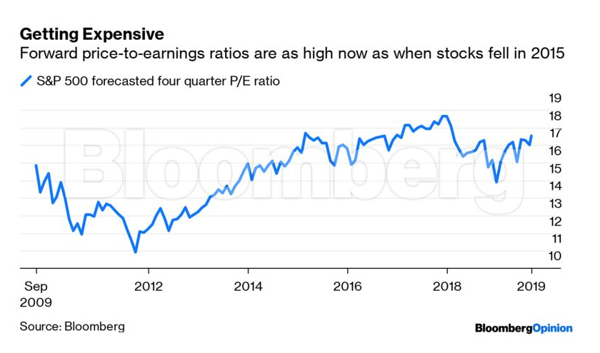 Οι μετοχές είχαν τελευταία αξιοσημείωτη πορεία, με το κλείσιμο του S&P 500 την περασμένη εβδομάδα στις 3.007 μονάδες. Η μέση εκτίμηση των αναλυτών σε έρευνα του Bloomberg τον Ιανουάριο ήταν ο γενικός δείκτης του χρηματιστηρίου της Νέας Υόρκης να φτάσει μόλις στις 2.913 μονάδες για φέτος. Ωστόσο, με τους οικονομικούς αναλυτές να αναπροσαρμόζουν το χρονοδιάγραμμα των προβλέψεών τους, τοποθετώντας την επόμενη ύφεση στο 2020 αντί του 2021, τις εκτιμήσεις για την πορεία των κερδών να αναθεωρούνται πτωτικά και τον λόγο τιμών προς κέρδη ανά μετοχή να βρίσκεται σε υψηλά, δεν θα είναι εύκολο για τις μετοχές να συνεχίσουν να ακολουθούν την ανιούσα, ακόμη και αν η Fed πράγματι συνεχίσει να μειώνει τα επιτόκια.