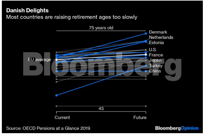 Δυστυχώς, μόνο μια χώρα, η Εσθονία, αύξησε πρόσφατα τα όρια συνταξιοδότησης. Άλλες, κυρίως η Δανία, είχαν υιοθετήσει από χρόνια ορθολογικές συνταξιοδοτικές πολιτικές, έτσι ώστε τα συστήματά τους να είναι ουσιαστικά απρόσβλητα από τις δημογραφικές διακυμάνσεις.