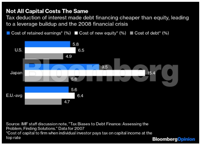Εδώ και περίπου 100 χρόνια, ο καπιταλισμός δείχνει μια μεροληψία υπέρ της μόχλευσης. Σε αντίθεση με τα μερίσματα, τα οποία καταβάλλονται μόνον αφού το κράτος έχει κρατήσει το μερίδιό του από τα κέρδη, οι τόκοι αφαιρούνται από τα προ φόρων κέρδη, συρρικνώνοντας το κομμάτι της πίτας το οποίο είναι διαθέσιμο για τον κρατικό "κορβανά".