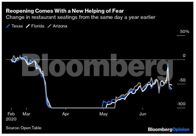 Ως αποτέλεσμα, οι ΗΠΑ υφίστανται μια τρομακτική αύξηση κρουσμάτων σε πολιτείες όπως η Αριζόνα, το Τέξας και η Φλόριντα, ενώ πολιτείες οι οποίες είχαν πληγεί νωρίτερα εξακολουθούν να παλεύουν να "δαμάσουν" την πανδημία.