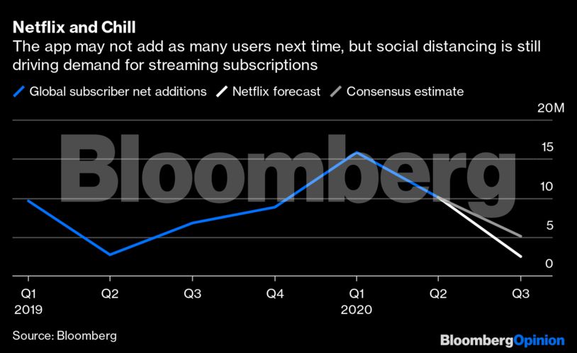 Όσον αφορά τους αριθμούς, η Netflix πρόσθεσε 10,1 εκατομμύρια πελάτες παγκοσμίως, περισσότερους σε σχέση με τη μέση εκτίμηση αναλυτών για 8,3 εκατομμύρια που συμμετείχαν σε έρευνα του Bloomberg. Αλλά πολλοί από αυτούς τους νέους χρήστες εντάχθηκαν στο Netflix λόγω κορονοϊού, καθιστώντας τις προοπτικές για τα επόμενα τρίμηνα λιγότερο εντυπωσιακές, όπως προειδοποίησε ο Hastings τον Απρίλιο. Η εταιρεία προβλέπει μόλις 2,5 εκατομμύρια νέους συνδρομητές για το τρίτο τρίμηνο, περίπου το ήμισυ από όσο προβλέπουν οι αναλυτές.