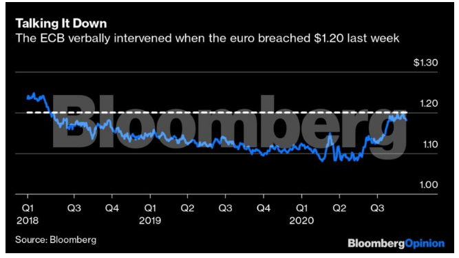 Πλέον τα κέρδη του κοινού ευρωπαϊκού νομίσματος απειλούν να κάνουν τις πιθανότητες η Ευρωζώνη να επιτύχει τον στόχο της για τον πληθωρισμό ακόμη πιο ισχνές και η ΕΚΤ εμφανίζεται σαφώς ανήσυχη μπροστά στο ενδεχόμενο μιας περαιτέρω ανατίμησης. Υπάρχει  επίσης ένας μη αμελητέος κίνδυνος η πρόεδρός της, Κριστίν Λαγκάρντ, να συνεχίσει την προσπάθεια συγκράτησης της ανόδου του ευρώ το προσεχές διάστημα.