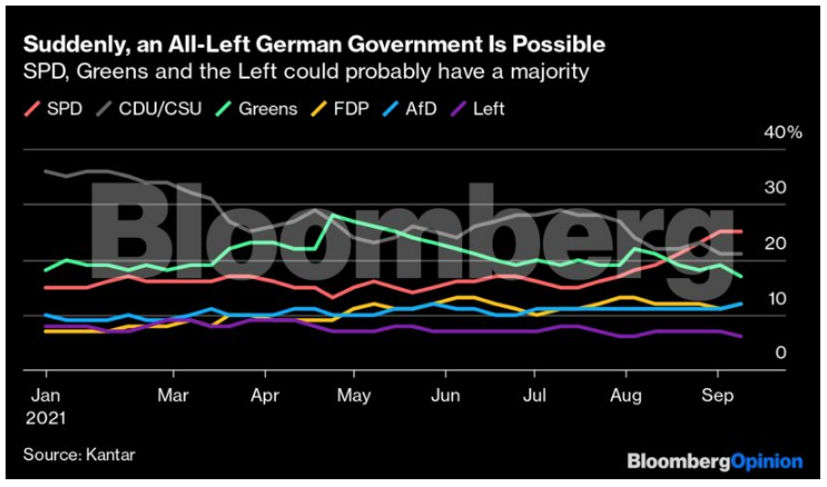 Πώς, λοιπόν, θα μπορούσε κάποιος να θεωρήσει αυτόν τον συνασπισμό μια σοβαρή επιλογή; Είμαι βέβαιος ότι ο Σολτς, πιθανός νέος καγκελάριος, δεν το κάνει. Ωστόσο δεν μπορεί να το πει αυτό και μπορεί επίσης να μην είναι σε θέση να αποτρέψει αυτό το αποτέλεσμα κατά τη διάρκεια των περίπλοκων διαπραγματεύσεων που θα ακολουθήσουν τις εκλογές. Σε αντίθεση με τους υποψηφίους των Πρασίνων και των συντηρητικών για την καγκελαρία, δεν ηγείται του δικού του κόμματος. Και οι άνθρωποι που ηγούνται του SPD - οι ‘Εσκεν και Βάλτερ-Μπόργιανς - κρατούν την πόρτα ανοιχτή για την Αριστερά.