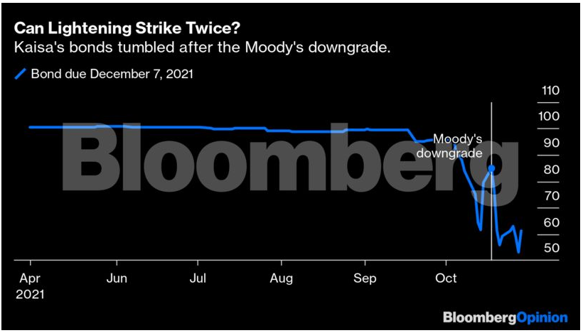 Στις αρχές Οκτωβρίου, είδαμε το χειρότερο sell-off εδώ και τουλάχιστον μια δεκαετία, αφότου η Fantasia Holdings Group Co., μιας από τις μικρότερες εταιρείες ανάπτυξης ακινήτων, επέλεξε να μην αποπληρώσει ένα ομόλογο, παρόλο που είχε τα χρήματα να το κάνει - ή τουλάχιστον έδινε την εντύπωση ότι τα είχε. Με άλλα λόγια, οι εταιρείες πρέπει να κάνουν catch-up προκειμένου να αντιστοιχίσουν τις αξιολογήσεις τους με την τιμολόγηση της αγοράς