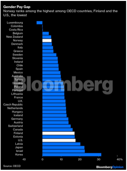 Ακόμη και στις σκανδιναβικές χώρες, η διαφορά αμοιβών μεταξύ των φύλων είναι μεγαλύτερη στον κλάδο των χρηματοοικονομικών υπηρεσιών και στον ασφαλιστικό κλάδο. Ο νόμος της Φινλανδίας θα παρείχε στις γυναίκες την προσφυγή σε περίπτωση διάκρισης, ωστόσο πολλές γυναίκες "τιμωρούνται" για μισθολογικές φιλοδοξίες, οπότε μήπως θα τις έβλαπτε μακροπρόθεσμα;