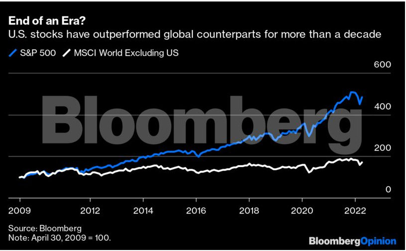 Η επιστροφή του πληθωρισμού ακολουθεί μια μακρά περίοδο υπεραπόδοσης μετά την οικονομική κρίση για τις μετοχές των ΗΠΑ. Κρίνοντας από τους δείκτες τιμής-κέρδους, ο δείκτης MSCI World Excluding United States είναι στα χειρότερο σημείο του σε σχέση με τον S&P 500 από την παγκόσμια χρηματοοικονομική κρίση του 2008-2009 μέχρι σήμερα.