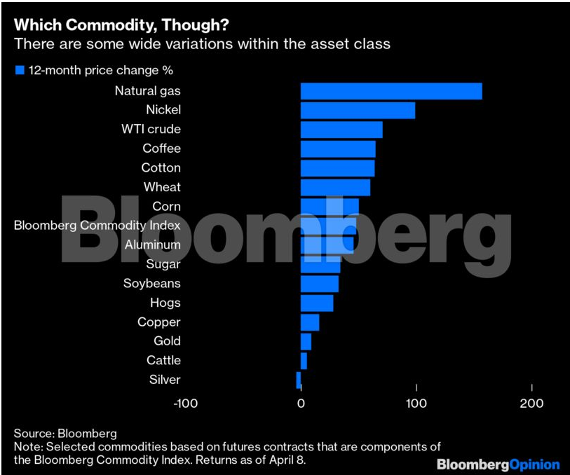 Ο Δείκτης Εμπορευμάτων του Bloomberg κατέγραψε άνοδο κατά 48% το περασμένο έτος και έχει υπερδιπλασιαστεί από το χαμηλό του Μαρτίου του 2020. Αναμφισβήτητα το ράλι των εμπορευμάτων θα μπορούσε να έχει ακόμη πολύ δρόμο μπροστά του, με τον δείκτη να βρίσκεται ακόμα σε λίγο περισσότερο από το ήμισυ του υψηλού του προ της χρηματοοικονομικής κρίσης του 2008.