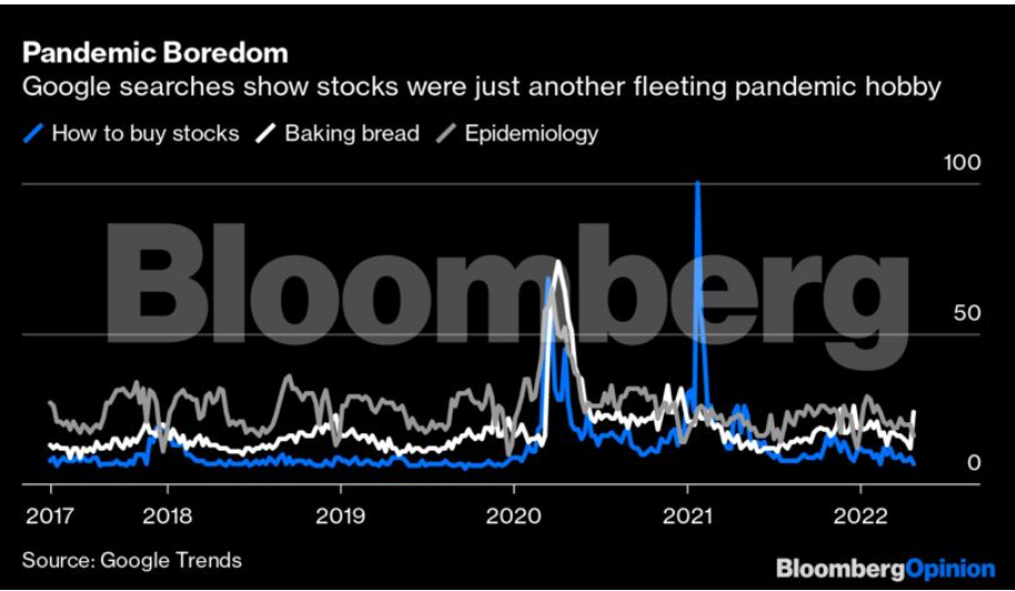 Φυσικά, οι φρενήρεις συναλλαγές μικροεπενδυτων αποδείχθηκαν ένα φευγαλέο πανδημικό χόμπι για πολλούς ανθρώπους, όπως η ερασιτεχνική επιδημιολογία και η τρέλα με το ψήσιμο του ψωμιού με προζύμι που επικράτησε κατά την αρχική φάση των lockdown στις ΗΠΑ, όπως δείχνουν τα στοιχεία από τις αναζητήσεις στη μηχανή αναζήτησης Google.