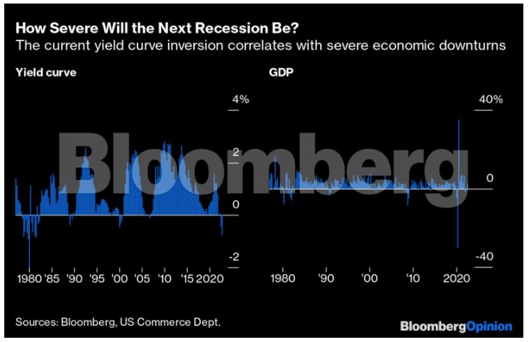 Αυτή η αναστροφή ξεπερνιέται μονάχα από εκείνες από το 1978 έως το 1982, όταν ο πρόεδρος της Federal Reserve, Paul Volcker, εκτίνασσε τα επιτόκια αναφοράς σε διψήφια επίπεδα προκειμένου να αντιστρέψει τον υψηλό πληθωρισμό, με κόστος δύο μακροχρόνιες και βαθιές υφέσεις. Οι επενδυτές αναρωτιούνται φυσικά: μήπως η επόμενη ύφεση θα είναι μεγαλύτερη και βαθύτερη από οποιαδήποτε άλλη τα προηγούμενα 40 χρόνια;