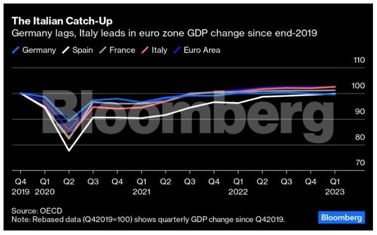 Ωστόσο, τα τελευταία χρόνια παρατηρήθηκε μια ευτυχής συρροή κυβερνητικής στήριξης, οικονομικών μεταρρυθμίσεων και δαπανών για την πανδημία της Ευρωπαϊκής Ένωσης - των οποίων η Ιταλία είναι ο μεγαλύτερος αποδέκτης, με εκτιμώμενη δυνητική ώθηση στο ΑΕΠ έως και 3,1% έως το 2030, σύμφωνα με την Eulala Rubio του Ινστιτούτου Jacques Delors. Η δε παγκόσμια καταναλωτική έκρηξη η οποία αψηφά τον πληθωρισμό και ενισχύει τον νότο της ευρωζώνης πρόκειται να κάνει το 2023 έτος-ρεκόρ για την τουριστική βιομηχανία. Οι ψηφιακοί νομάδες στη Σικελία αυξάνονται παράλληλα με μια μετα-Brexit έκρηξη στο πλούσιο Μιλάνο, όπου οι τιμές των ακινήτων έχουν εκτοξευθεί και οι χρηματιστές έχουν δημιουργήσει βάσεις προκειμένου να επωφεληθούν από τις φορολογικές ελαφρύνσεις.