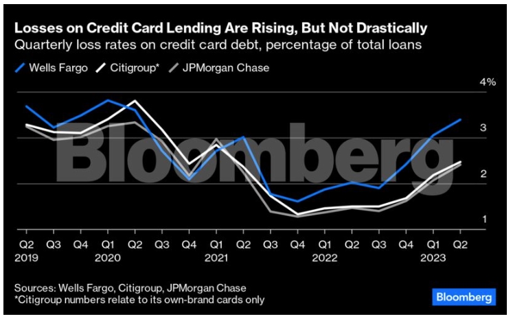 Όλες οι τράπεζες αίρουν τις προβλέψεις για ζημιές στις πιστωτικές κάρτες, αυτό ωστόσο οφείλεται τόσο στον αυξημένο δανεισμό, καθώς οι άνθρωποι συνεχίζουν να ξοδεύουν, όσο και στους πελάτες οι οποίοι αγωνίζονται να αποπληρώνουν το χρέος τους. Τα ποσοστά ζημιών στον δανεισμό πιστωτικών καρτών αυξήθηκαν, παραμένουν ωστόσο κάτω από τα επίπεδα τα οποία είχαν καταγραφεί πριν από την πανδημία της Covid-19 και χαμηλότερα από εκείνα που κάθε τράπεζα θεωρεί φυσιολογικά.