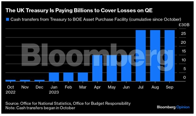 Παρά τις απώλειες άνω των 15 δισεκατομμυρίων στερλινών μέχρι στιγμής από τις ενεργές πωλήσεις, ο εκτελεστικός διευθυντής της BoE για τις Αγορές Andrew Hauser κατέστησε σαφές στις 3 Νοεμβρίου ότι ο στόχος είναι η μείωση του ισολογισμού στο μισό του τρέχοντος επιπέδου.