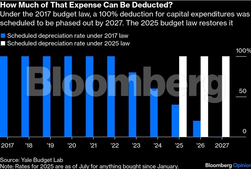 Οι επιχειρήσεις θα έχουν περισσότερα χρήματα. Άλλη μία διάταξη του νόμου για τον προϋπολογισμό είναι ότι οι εταιρείες μπορούν να αφαιρούν ως δαπάνη το 100% των αγορών εξοπλισμού στο έτος που πραγματοποιούνται. Υπάρχουν ενδείξεις ότι ένας παρόμοιος κανόνας, καθώς και οι φορολογικές περικοπές για τις επιχειρήσεις, ενίσχυσαν τις επενδύσεις κατά 11% και το ΑΕΠ κατά σχεδόν 1% μετά την ψήφιση του φορολογικού νόμου του 2017. Όμως το ποσοστό των δαπανών που οι εταιρείες επιτρεπόταν να αφαιρούν μειωνόταν από τότε που ψηφίστηκε ο αρχικός νόμος και υπήρχε αβεβαιότητα για το ποιο θα ήταν στο μέλλον. Η νέα διάταξη αναμένεται να αυξήσει τις επενδύσεις σε πάγιο κεφάλαιο και την ανάπτυξη το επόμενο έτος και πέραν αυτού.