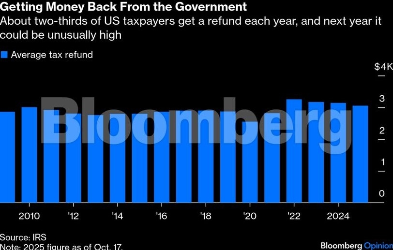 Οι καταναλωτές θα έχουν περισσότερα χρήματα. Ο υπουργός Οικονομικών Σκοτ Μπέσεντ δήλωσε ότι αναμένει οι Αμερικανοί να λάβουν έως και 150 δισ. δολάρια σε επιστροφές φόρων στις αρχές του επόμενου έτους ως αποτέλεσμα του νόμου για τον προϋπολογισμό που υπέγραψε ο πρόεδρος το περασμένο καλοκαίρι. Τα υψηλότερα εισοδήματα, που ξοδεύουν μικρότερο ποσοστό του εισοδήματός τους, θα αισθανθούν μεγαλύτερο αντίκτυπο, με αξιοσημείωτη εξαίρεση όσους έχουν εισόδημα από φιλοδωρήματα. Παρόλα αυτά, το Γραφείο Προϋπολογισμού του Κογκρέσου αναμένει ότι οι φορολογικές περικοπές θα ενισχύσουν τη ζήτηση και την προσφορά εργασίας το επόμενο έτος. Ο Τραμπ λέει επίσης ότι θα στείλει επιταγές ύψους 2.000 δολαρίων στα περισσότερα νοικοκυριά το επόμενο έτος για να κατευνάσει τις ανησυχίες σχετικά με το κόστος ζωής. Αυτό καλό είναι να αντιμετωπιστεί με επιφύλαξη, αλλά η συνολική κατεύθυνση της φορολογικής πολιτικής είναι προς περισσότερη κατανάλωση και μεγαλύτερη εμπιστοσύνη για τους καταναλωτές.