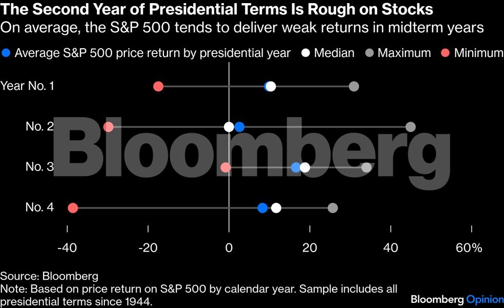 Κάποια από αυτά ήταν αναμενόμενα. Κατά μέσο όρο, το δεύτερο έτος της θητείας ενός προέδρου είναι συχνά το χειρότερο για τις αμερικανικές μετοχές: μετά τις μεγάλες υποσχέσεις του πρώτου έτους, οι traders τείνουν να μετριάζουν τον ενθουσιασμό τους, καθώς οι πρόεδροι στο δεύτερο έτος της θητείας τους, υπό την πίεση να βοηθήσουν τα κόμματά τους στις ενδιάμεσες εκλογές (midterms), εντείνουν μερικές φορές την λαϊκιστική ρητορική τους.