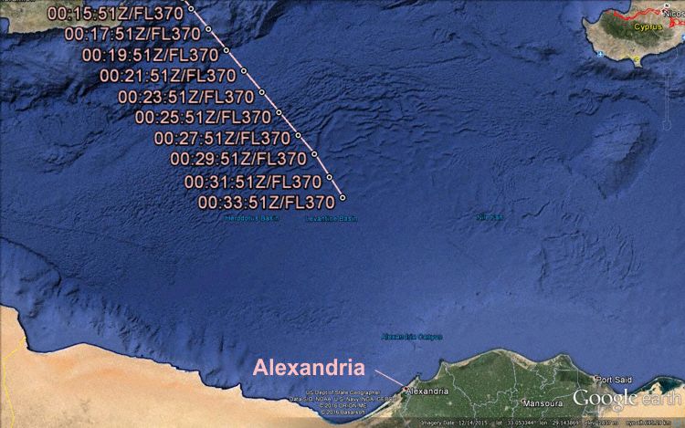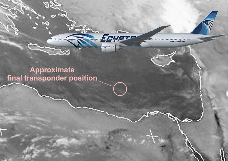 Περίπου δύο λεπτά αφότου εισήλθε στον αιγυπτιακό εναέριο χώρο, χάθηκε το στίγμα του πολιτικού αεροσκάφους της Agyptair. Εκείνη την ώρα βρισκόταν 7 μίλια νοτιοανατολικά της θέσης Κούμπι στην ανατολική Κρήτη, όπως δήλωσε ο διοικητής της Υπηρεσίας Πολιτικής Αεροπορίας Κωνσταντίνος Λιντζεράκος.