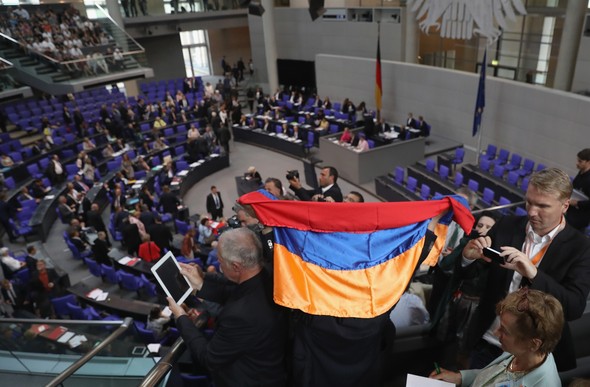 Η Αρμενία χαιρέτισε σήμερα την έγκριση από τους γερμανούς βουλευτές ενός ψηφίσματος που αναγνωρίζει την αρμενική γενοκτονία που διαπράχθηκε κατά το τέλος της Οθωμανικής Αυτοκρατορίας, ένα ψήφισμα που αμφισβήτησε με δριμύτητα η Τουρκία η οποία απορρίπτει αυτό τον όρο.