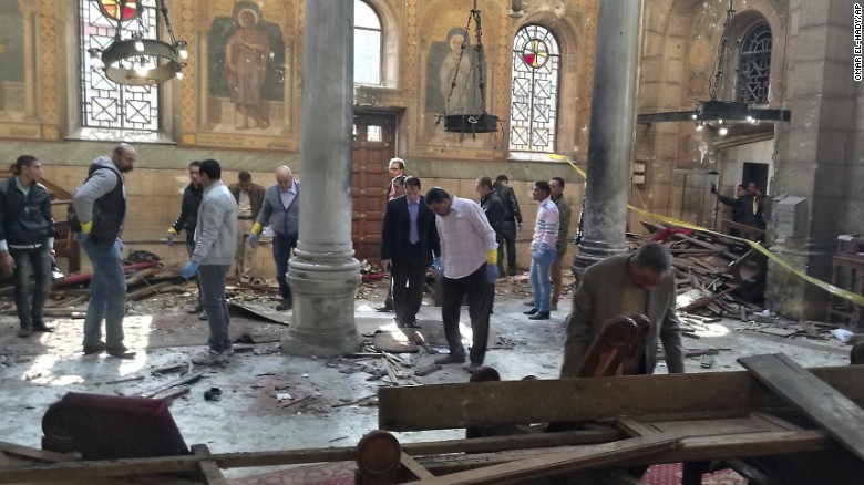 Η επίθεση σημειώθηκε λίγο πριν από τις 10.00 στην εκκλησία Μαρ Γκίργκις (του Αγίου Γεωργίου), τη στιγμή που η χριστιανική κοινότητα ετοιμάζεται για τη Μεγάλη Εβδομάδα που αρχίζει σήμερα, Κυριακή των Βαΐων, και τρεις εβδομάδες πριν από την επίσκεψη του Πάπα Φραγκίσκου στην Αίγυπτο, σύμφωνα με την Κοπτική Εκκλησία της Αιγύπτου.