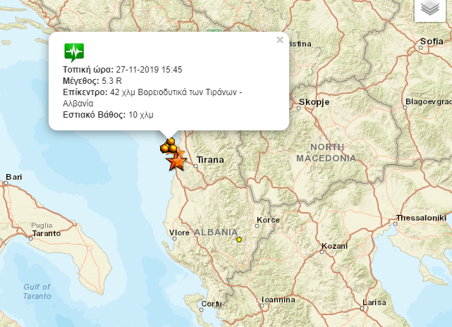 Το επίκεντρο εντοπίστηκε σε βάθος 10 χιλιομέτρων, στα 42 χιλιόμετρα βορειοδυτικά από τα Τίρανα και στα 22 χιλιόμετρα βόρεια από το Δυρράχιο.