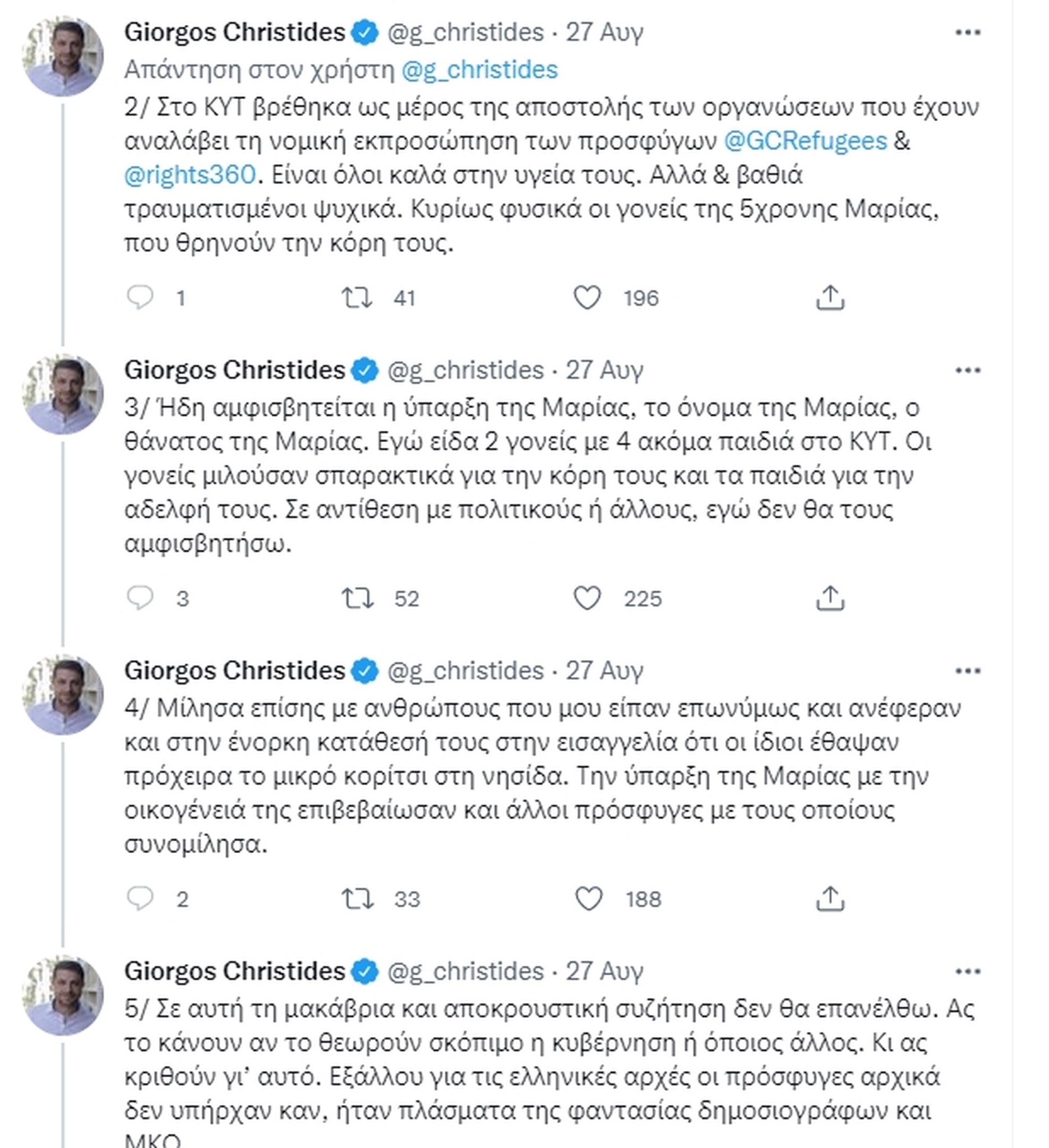 Στη συνέχεια, ο δημοσιογράφος Γιώργος Χρηστίδης με αναρτήσεις του στο twitter θέλησε να δώσει διευκρινίσεις για την ύπαρξη ή όχι της μικρής Μαρίας: