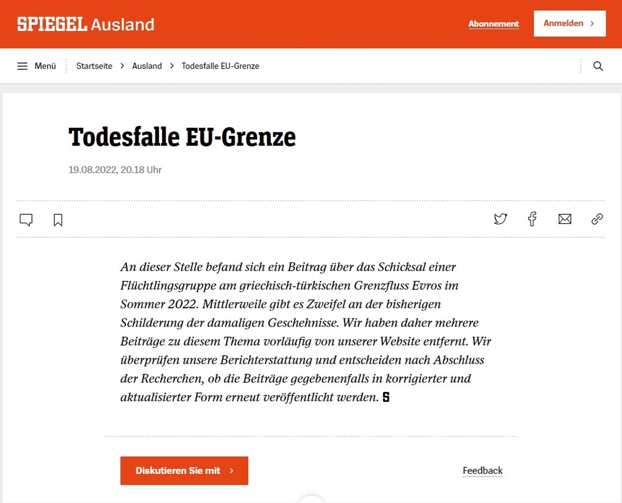 Το γερμανικό Der Spiegel κατέβασε ολα τα επίμαχα άρθρα σχετικά με την υπόθεση των 38 προσφύγων από την Συρία, οι οποίοι είχαν παγιδευτεί σε νησίδα του Έβρου το περασμένο καλοκαίρι.