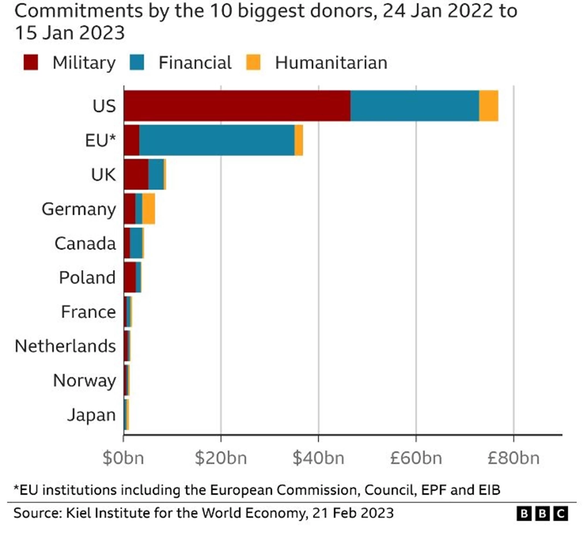 Πέρα από τις γεωπολιτικές και γεωοικονομικές ανακατατάξεις που συζητούν οι αναλυτές σε θεωρητικό επίπεδο, σε απλά και μετρήσιμα στοιχεία, ο ένας χρόνος πολέμου στην Ουκρανία έχει οδηγήσει σε: