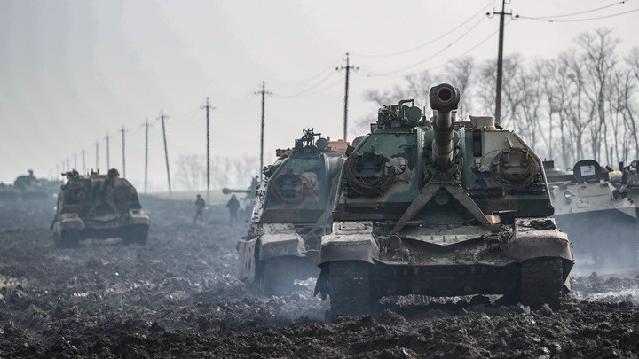 Νωρίς το πρωί, ρωσικά τεθωρακισμένα διεισδύουν στην ουκρανική επικράτεια από το βορρά -από τη σύμμαχο της Μόσχας Λευκορωσία-, τον νότο και την ανατολή.