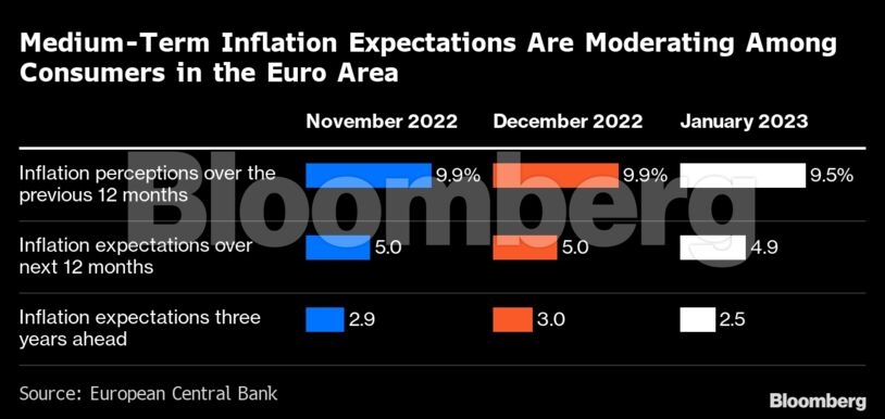 Οι προσδοκίες των καταναλωτών για τον πληθωρισμό υποχώρησαν "σημαντικά" τον Ιανουάριο σύμφωνα με την Ευρωπαϊκή Κεντρική Τράπεζα.
