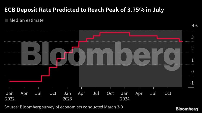 Έρευνα Bloomberg: Στο 3,75% το τελικό επιτόκιο της ΕΚΤ