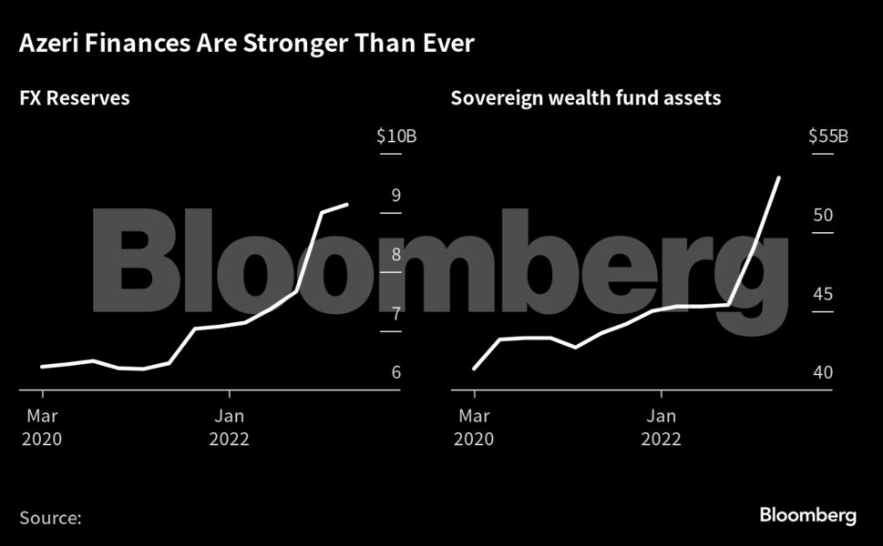 Το Αζερμπαϊτζάν έχει επίσης επωφεληθεί από τις υψηλότερες τιμές του πετρελαίου και αναδεικνύεται όλο και περισσότερο σε σημαντικό προμηθευτή φυσικού αερίου στην Ευρώπη, καθώς τα ευρωπαϊκά κράτη αναζητούν εναλλακτικές λύσεις από τη Ρωσία. Πριν από ένα χρόνο, η Ευρωπαϊκή Ένωση κατέληξε σε συμφωνία για τον διπλασιασμό των εισαγωγών φυσικού αερίου από το Αζερμπαϊτζάν.