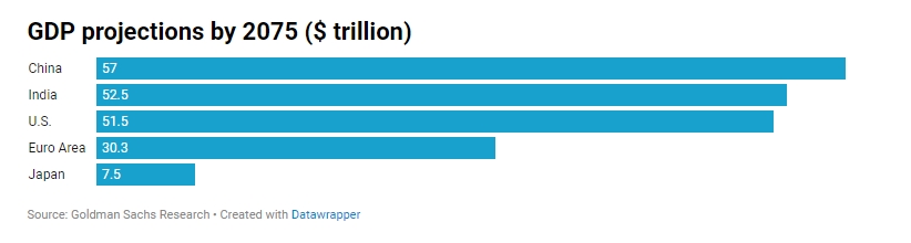 Ο "χρησμός" της Goldman Sachs: Ποια χώρα θα ξεπεράσει την οικονομία των ΗΠΑ έως το 2075