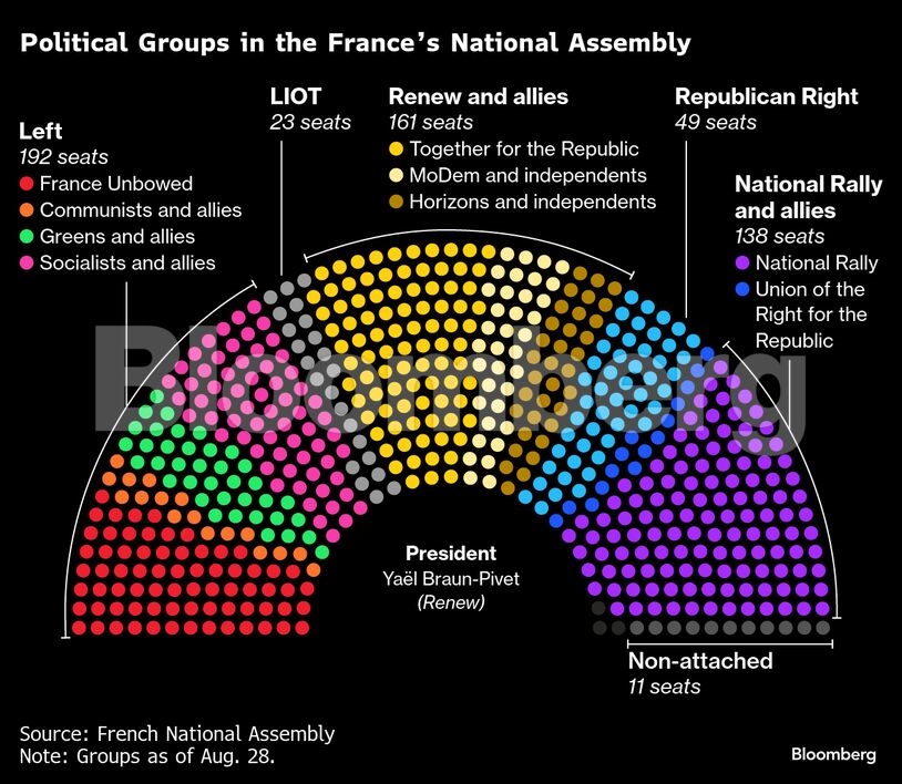 Στο επίκεντρο βρίσκονται οι συζητήσεις μεταξύ των συμμάχων του Μακρόν και των Σοσιαλιστών, οι οποίοι ασκούν τεράστια επιρροή στο κοινοβούλιο. Οι Σοσιαλιστές έχουν απαιτήσει από τον Μακρόν όχι μόνο να διορίσει έναν αριστερό πρωθυπουργό, αλλά και το πρόσωπο αυτό να είναι ανοιχτό σε σημαντικές αλλαγές της οικονομικής ατζέντας του προέδρου, συμπεριλαμβανομένης της αναστολής της συνταξιοδοτικής μεταρρύθμισης του 2023 που καθορίζει την πολιτική του κληρονομιά, καθώς και φορολογικών αυξήσεων για τους πλούσιους.
