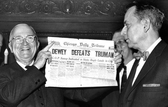 "Πρόκειται για πανωλεθρία εφάμιλλη της 'νίκης του Dewey έναντι του Truman'" λέει ο Larry Sabato, πολιτικός επιστήμονας στο Πανεπιστήμιο της Βιρτζίνια, αναφερόμενος στους περίφημους λανθασμένους τίτλους εφημερίδων μετά τις προεδρικές εκλογές του 1948.
