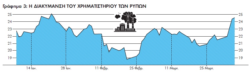 Υπενθυµίζεται ότι για την Ελλάδα οι τιµές των δικαιωµάτων εκποµπής επιδρούν διπλά στην αγορά, αφού επηρεάζουν αφενός το κόστος της παραγωγής της ΔΕΗ και αφετέρου το κόστος των τιµών της ενέργειας για τους καταναλωτές που έχουν τιµολόγια µε ρήτρες ρύπων (π.χ. ενεργοβόρος βιοµηχανία).