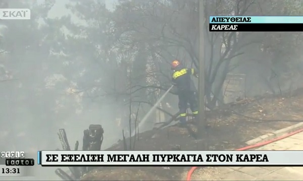 Έκκληση για βοήθεια απευθύνουν οι κάτοικοι του Καρέα και της Ηλιούπολης, ενώ στο κέντρο επιχειρήσεων της πυροσβεστικής μετέβη ο πρωθυπουργός Αλέξης Τσίπρας, με τον Γ. Πανούση και τον Ν. Βούτση.