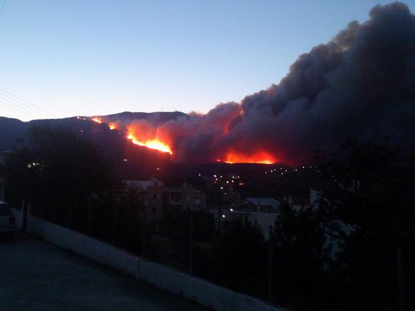 Η πυρκαγιά, η οποία εκδηλώθηκε τα ξημερώματα, από άγνωστη αιτία, εκτείνεται σε μεγάλο μέτωπο κι έχει φτάσει ως τις παρυφές της Νεάπολης, μόλις 500 μέτρα από το Ναυτικό Μουσείο. Επιπλέον, απειλεί το χωριό Καστανιά στο πίσω του βουνού.