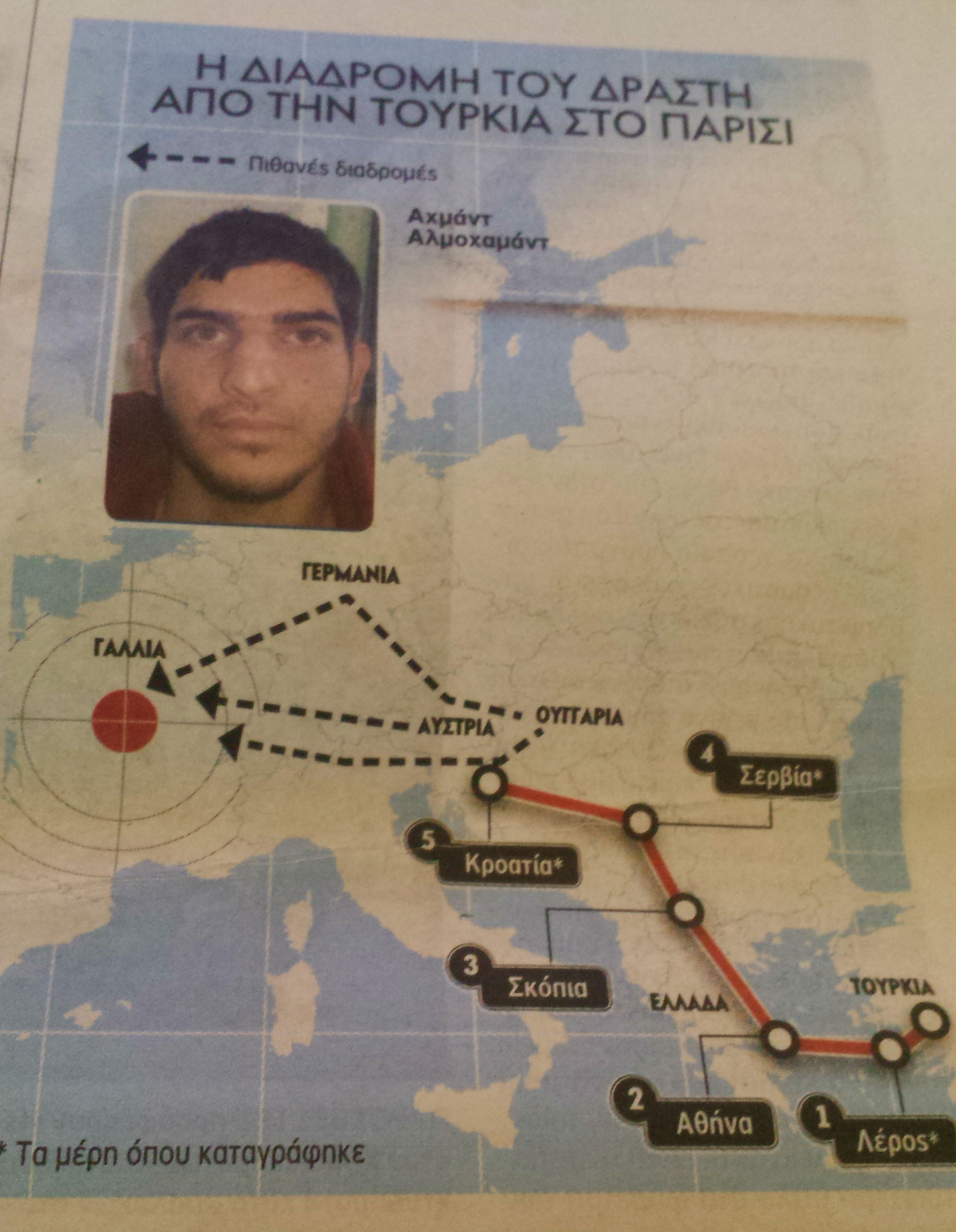 Έκανε δε λόγο για τεράστια βιομηχανία με πλαστά διαβατήρια στην Τουρκία., στον απόηχο της δήλωσης της υπουργού Δικαιοσύνης της Γαλλίας ότι το διαβατήριο Σύρου πρόσφυγα που βρέθηκε στη σορό ενός από τους τρομοκράτες ήταν πλαστό.