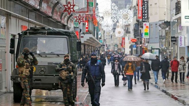 Οι συγκοινωνίες υπολειτούργησαν και οι περισσότεροι δημόσιοι χώροι ήταν κλειστοί μετά από σύσταση των δήμων της περιφέρειας των Βρυξελλών. Ένοπλοι αστυνομικοί περιπολούν συνεχώς και αδιακόπως στο κέντρο της πόλης ενώ εξαιρετικά εμφανής είναι και η παρουσία του στρατού.