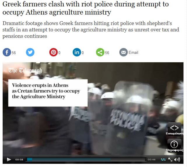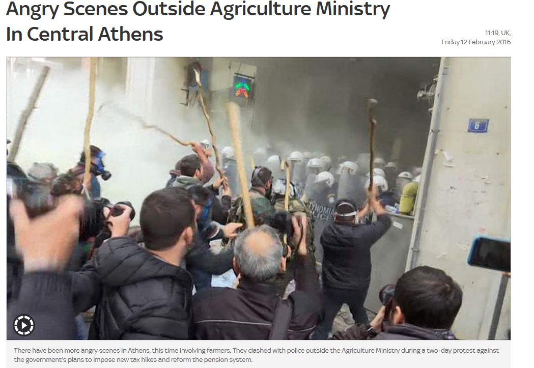 Η ενημερωτική ιστοσελίδα news.sky.com αναφέρεται στις χθεσινές συγκρούσεις μεταξύ αγροτών και αστυνομικών στην Αθήνα, συνδυαστικά με την ολοένα επιδεινούμενη οικονομική ύφεση της Ελλάδας.