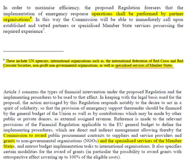 Ίδιες πληροφορίες αναφέρουν ότι τα 700 εκατ. που φέρεται να λαμβάνει η Ελλάδα ως ενίσχυση για την αντιμετώπιση του Προσφυγικού, δεν θα δοθούν απευθείας -αποκλειστικά- σε μη κυβερνητικές οργανώσεις αλλά και σε Οργανισμούς και κρατικές δομές. Προς επιβεβαίωση, στη συνέχεια πηγές του Μαξίμου έδωσαν στη δημοσιότητα αποσπάσματα από έγγραφο της Κομισιόν, στο οποίο διευκρινίζεται οτι η κοινοτική πρόταση προβλέπεται τη συμμετοχή και εξειδικευμένων υπηρεσιών των κρατών - μελών.