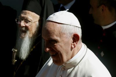 Στη συνέχεια, ο Ποντίφικας συναντήθηκε με τον Οικουμενικό Πατριάρχη Βαρθολομαίο και τον Αρχιεπίσκοπο Αθηνών και Πάσης Ελλάδος Ιερώνυμο, και επισκέφτηκαν το hot spot της Μόριας.