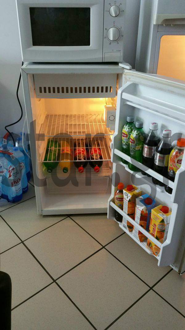Πάνω στα μαύρα ράντζα υπάρχουν εκτός από μαξιλάρια και σεντόνια (σε πλαστική συσκευασία!), πετσέτες σε λευκό, γκρι και off black χρώμα. Eπίσης στο χώρο υπάρχουν ψυγεία με ισοτονικά ποτά.