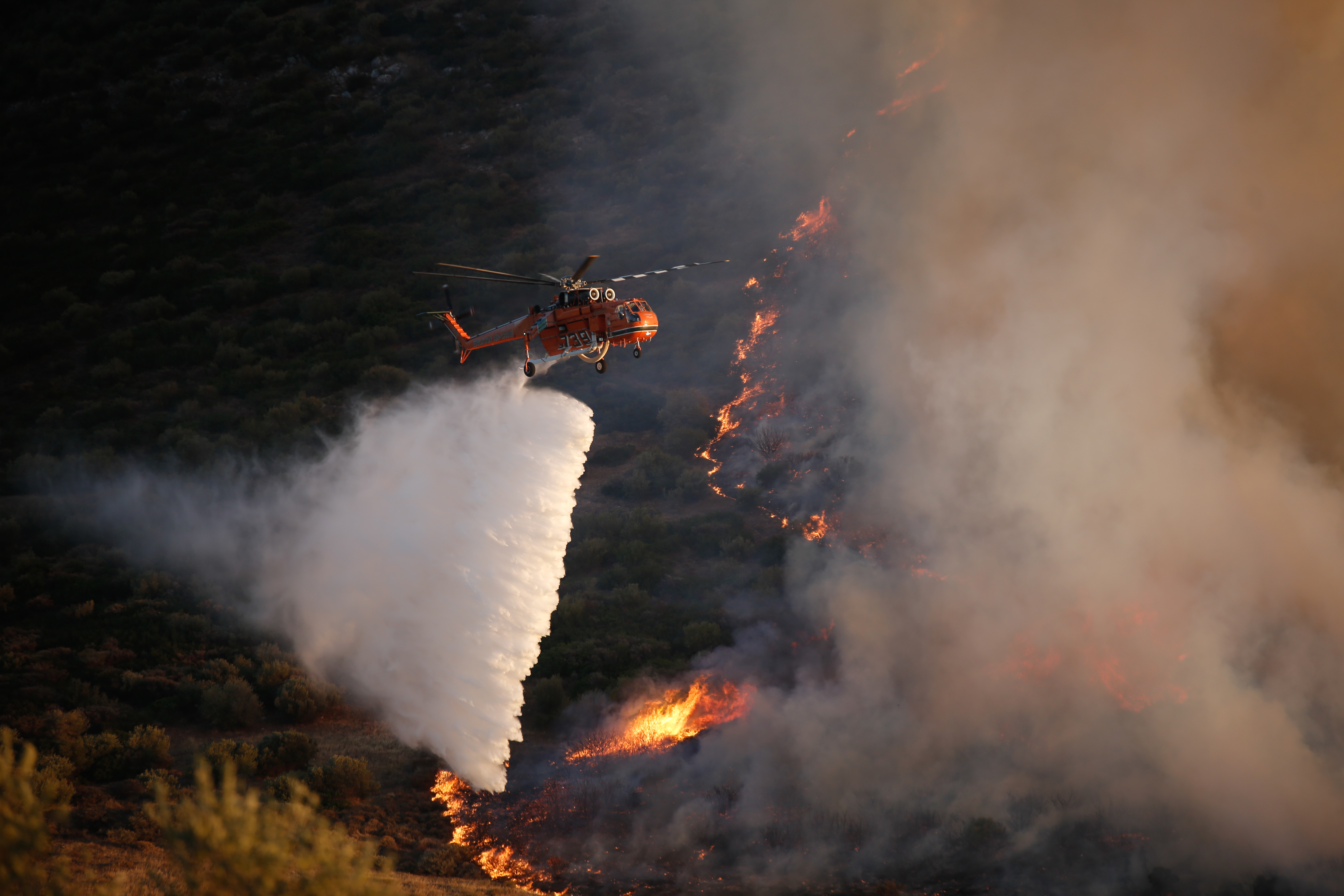 Η μάχη συνεχίζεται, καθώς οι ισχυροί άνεμοι δυσχεραίνουν το έργο της κατάσβεσης, ενώ πρόβλημα αποτελεί και το γεγονός ότι υπάρχουν αρκετές διάσπαρτες εστίες.