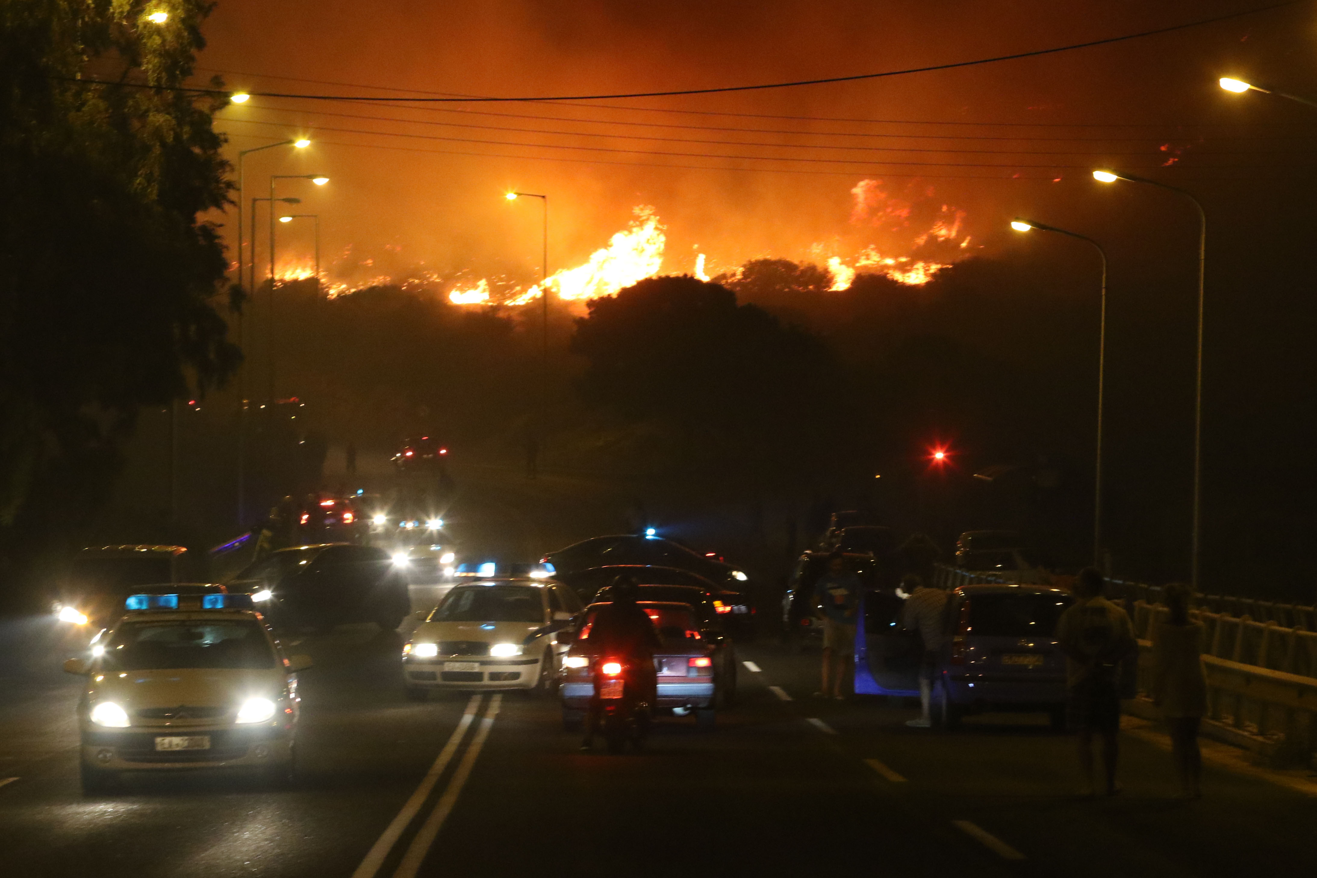 Οι επίγειες δυνάμεις της Πυροσβεστικής συνεχίζουν να επιχειρούν προκειμένου να γίνει εφικτό να τεθεί υπό έλεγχο, όσο το δυνατόν συντομότερα, η μεγάλη πυρκαγιά που μαίνεται από το απόγευμα.