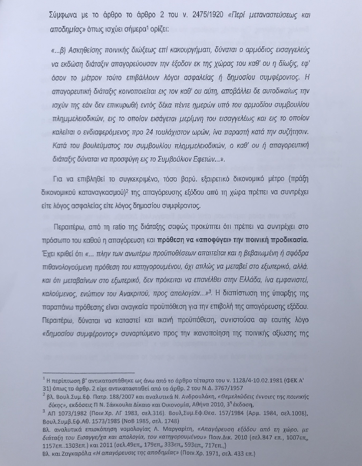 Στο υπόμνημα που κατέθεσε στο Συμβούλιο Πλημμελειοδικών Αθηνών σχετικά με την επικύρωση της εισαγγελικής διάταξης, ο κ. Φρουζής επαναλαμβάνει ότι ακόμη δεν έχει λάβει γνώση της σχηματισθείσης δικογραφίας και διαβεβαιώνει ότι δεν διανοήθηκε ποτέ να διαφύγει από τη χώρα.