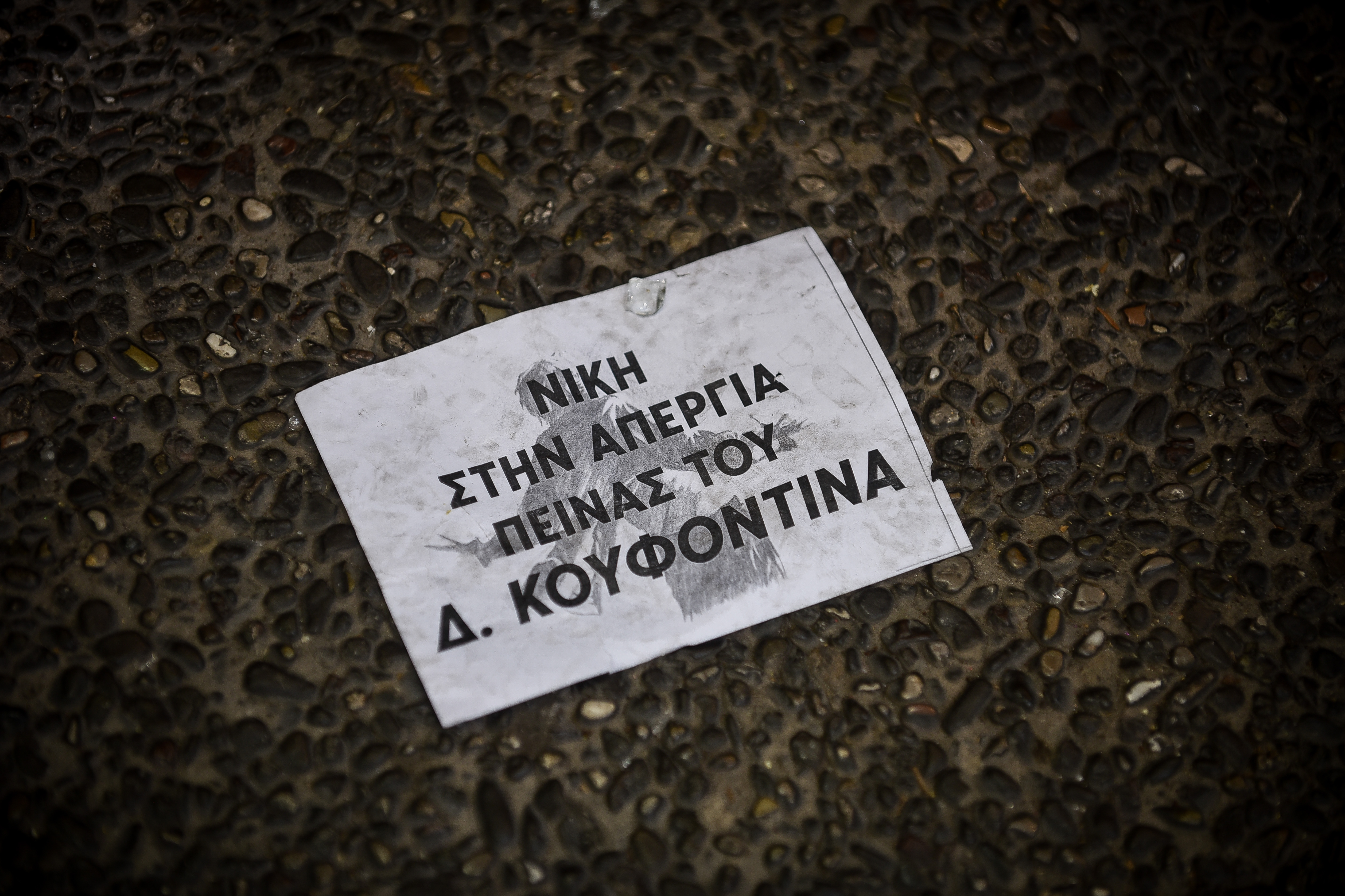 Οι άγνωστοι πέταξαν φυλλάδια ("τρικάκια") με συνθήματα υπέρ του καταδικασμένου τρομοκράτη και εκτελεστή της 17 Νοέμβρη Δημήτρη Κουφοντίνα.